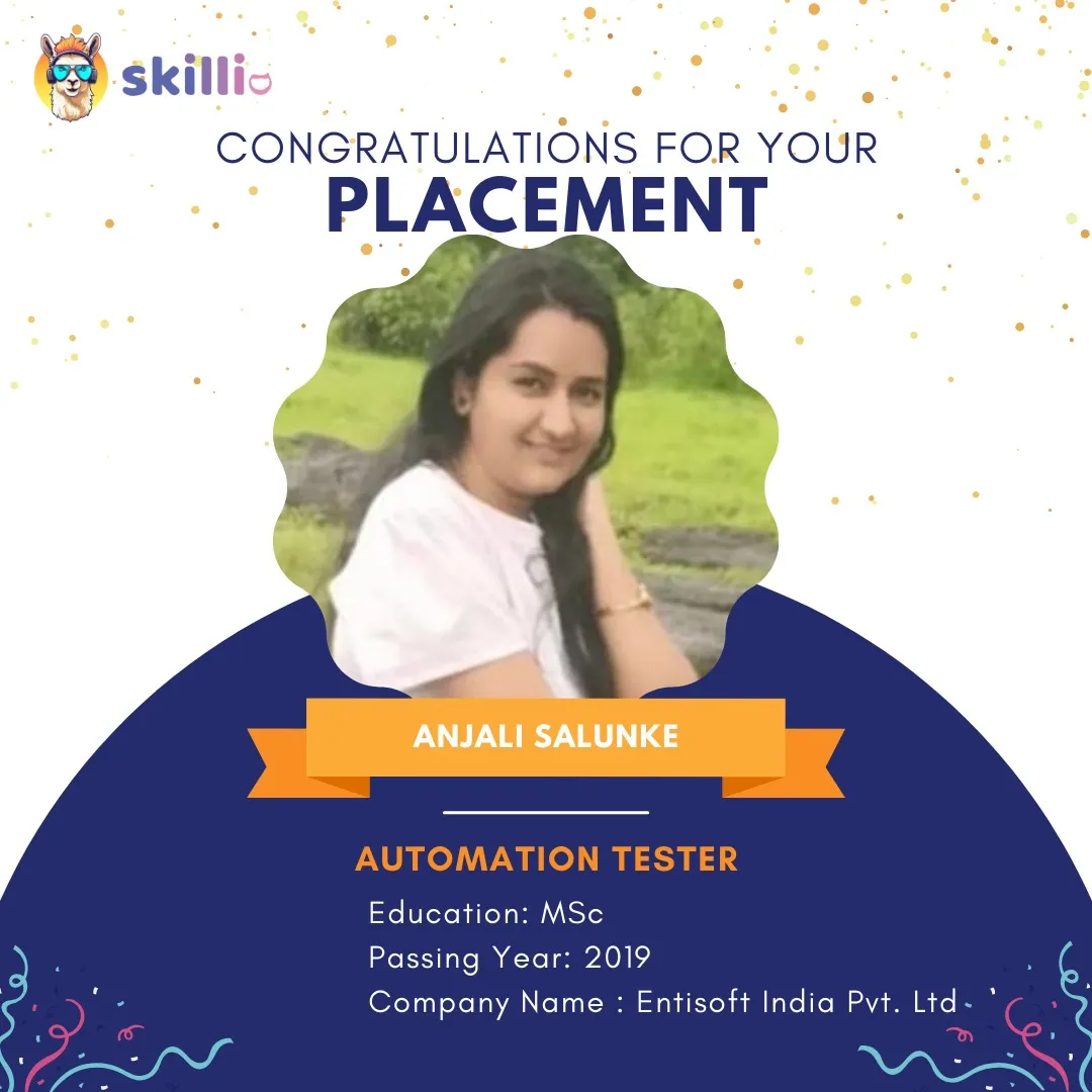 Skillio gives skills and hands-on experience in Python selenium and we know that students and people looking for work may have limited funds. So, we have a unique pay-after-placement policy that helps students join the course without having to pay immediately. Students can focus on learning and getting better at their skills, and they don’t have to pay for the course until they get a job and boost the confidence they need to do well in automation testing.